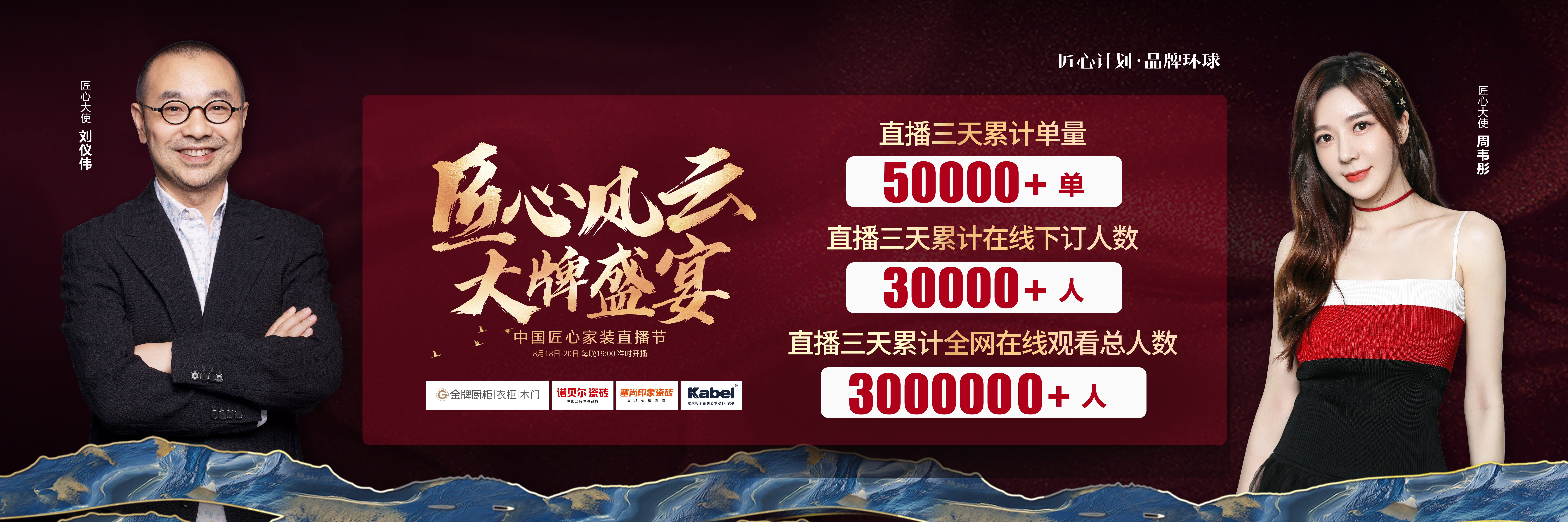由百亿厨柜、诺贝尔瓷砖、塞尚印象瓷砖、卡百利艺术涂料联合缔造,创赢科技系统支持全案营销执行的“匠心风云 大牌盛宴”中国匠心家装直播节于8月20日圆满落...